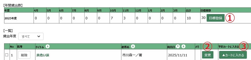 ①目標冊数を登録する