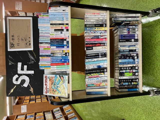 何度も貸し出された資料も加えると70~80冊ほど貸出がありました。幅広い年齢層の方々に利用いただき、「この展示がなかったら借りることはなかった」、「SFに詳しい人が選んだ本の構成だ」、「この本SFなんですね」などのご感想をいただきました。