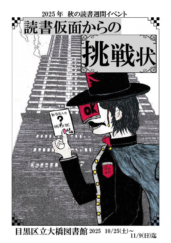 大橋図書館では、謎解きをテーマに「読書仮面からの挑戦状」を開催しました。