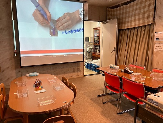 アルミホイルにホワイトボードマーカーで描いた絵を水に沈めて、絵を浮かばせる実験と折り紙の花びらを水に浮かべると、花が咲いたように開いていく実験を行いました。20人の子どもたちが参加してくれました。アルミに描いた絵が水に浮いた時には「やったー!」と嬉しそうにしている様子が微笑ましかったです。