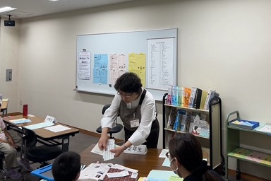 パスファインダーの活用方法を楽しく分かりやすく説明し、実際の資料を用意して、どのように課題解決していくかを実践しました。「ラベルの番号はこういうことだったのか」「もっといろいろなテーマについて自分で本を探してみたい」など楽しみながら参加してくれました。
